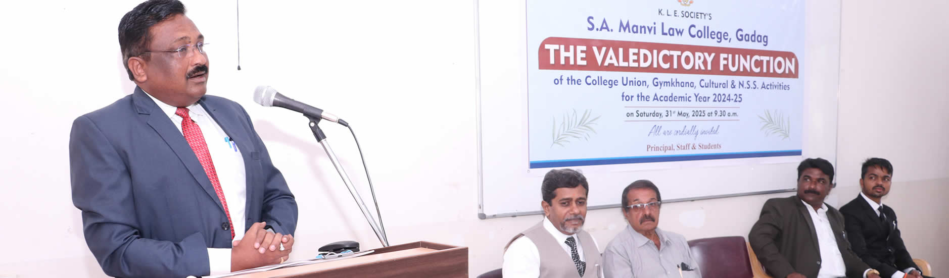 K.L.E. Society’s S. A. Manvi Law College, founded in the year 1974 with a vision to provide legal education and to produce globally competent professionals. Since then, the college has served to impart legal education and produced number of advocates. The college has produced many scholarly students. The college has secured the ‘Dr. D. C. Pawate Best N.S.S. Unit Award’ and the ‘Dr. D. C. Pawate Best N.S.S Volunteer Award’ for the year 2008-09 from Karnatak Univeristy, Dharwad.