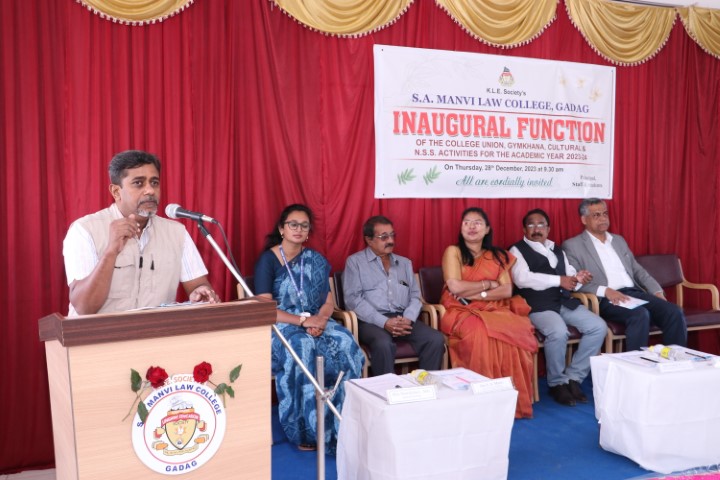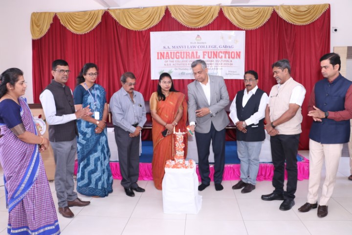 The college has organized Inaugural function of the “College Union, Gymkhana & NSS Unit” activities for the year 2023-24 held on 28 th December, 2024. The programme commenced with the lighting the lamp by the Chief Guest and other dignitaries on dais. Smt. Vyshali. M.L. IAS, Deputy Commissioner & District Magistrate, Gadag was the Chief Guest. In her speech she highlighted that, education through book is not enough but also importance should be given for the practical training also. Further she expressed that as you are LLB students, it is very important for you to have good relationship with society, which also helps to solve many of the evils in the society. She also added that Students of Law should develop leadership qualities.Prof.(Dr.) Suresh V. Nadagoudar, Registrar/Registrar Evaluation, Karnataka State RuralDevelopment & Panchayat Raj University, Gadag was the Guest of Honor. He addressed thestudents need for education and learning. The role of learning begins with preparation and the process of preparation should start from the day of joining the institution. Learning does not only mean from the textbooks, but also from various activities you involve yourself.